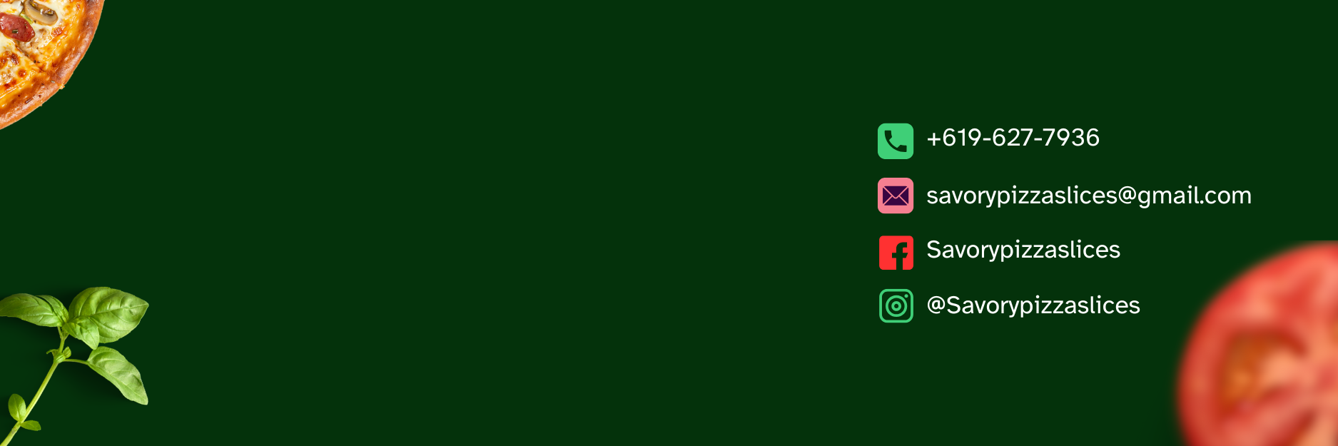 Need more details before booking? Feel free to reach out to us at savorypizzaslices@gmail.com or call us at (619)-627-7936. Our team is happy to answer your questions and help you create a memorable pizza experience.