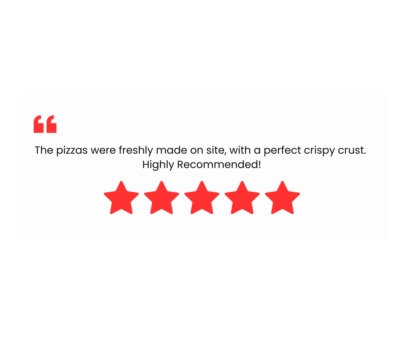We prepare and cook the pizzas on-site, right at your event. This ensures that every slice is piping hot and fresh out of the oven.